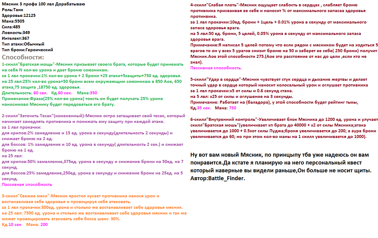 5)Искажение плоти (5 уровней) Герой прикрепляет к цели крутящееся лезвие, которое наносит 2500 урона всем противникам вокруг цели и повышает защиту цели на 25 ед.