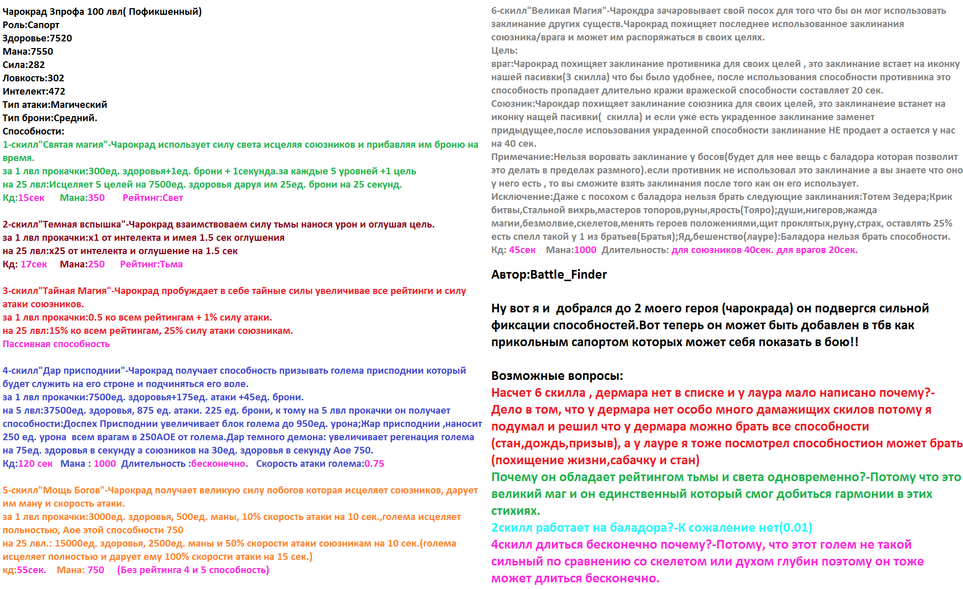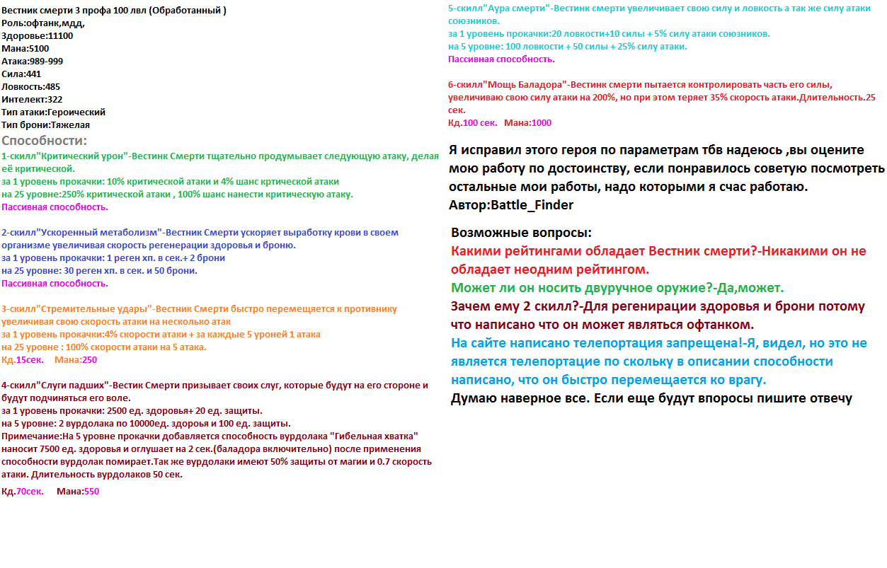 Способности: уменьшение урона от магии на 60%, агр, шанс в 25% нанести дополнительно 4000 ед. урона.